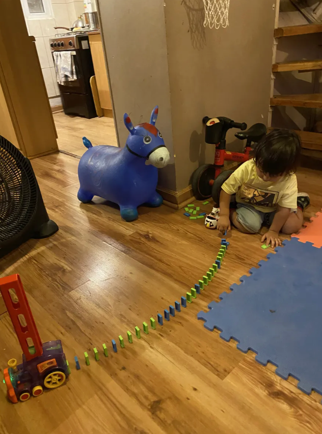 Destacó lo fácil que es para su hijo usar el tren y colocar los dominós.